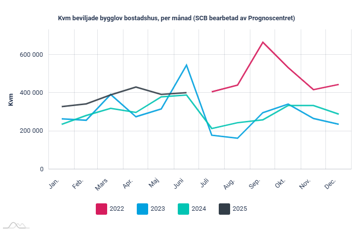 Den senaste statistiken för byggstarter och beviljade bygglov omfattar juni 2025. Den hämtas från SCB och bearbetas sedan av Prognoscentret för bland annat eftersläpning i den inrapporterade statistiken.