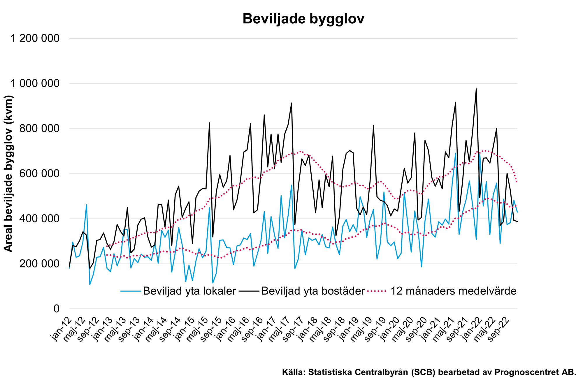 Statistiken inhämtas från SCB, Hemnet och Svensk Mäklarstatistik och bearbetas av Prognoscentret för eftersläpning i inrapporteringen. För Prognoscentrets kunder finns hela byggstatistiken tillgänglig för nedladdning i kundwebben.