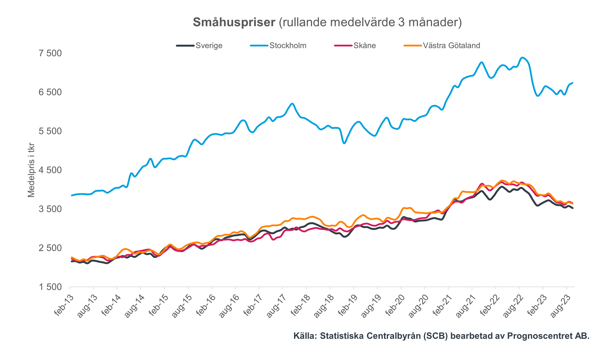Villapriserna i hela riket steg med 2 procent i oktober jämfört med september. På årsbasis har de backat med 7,5 procent.