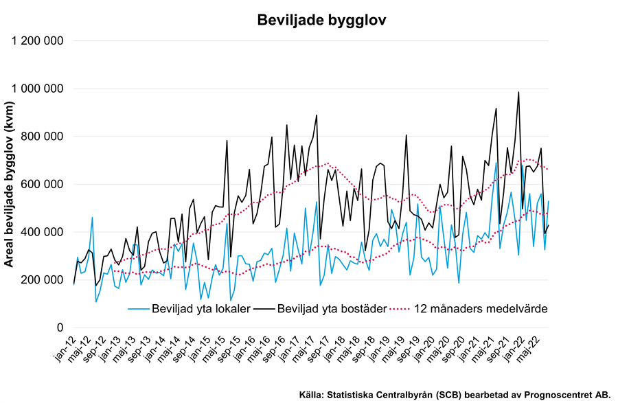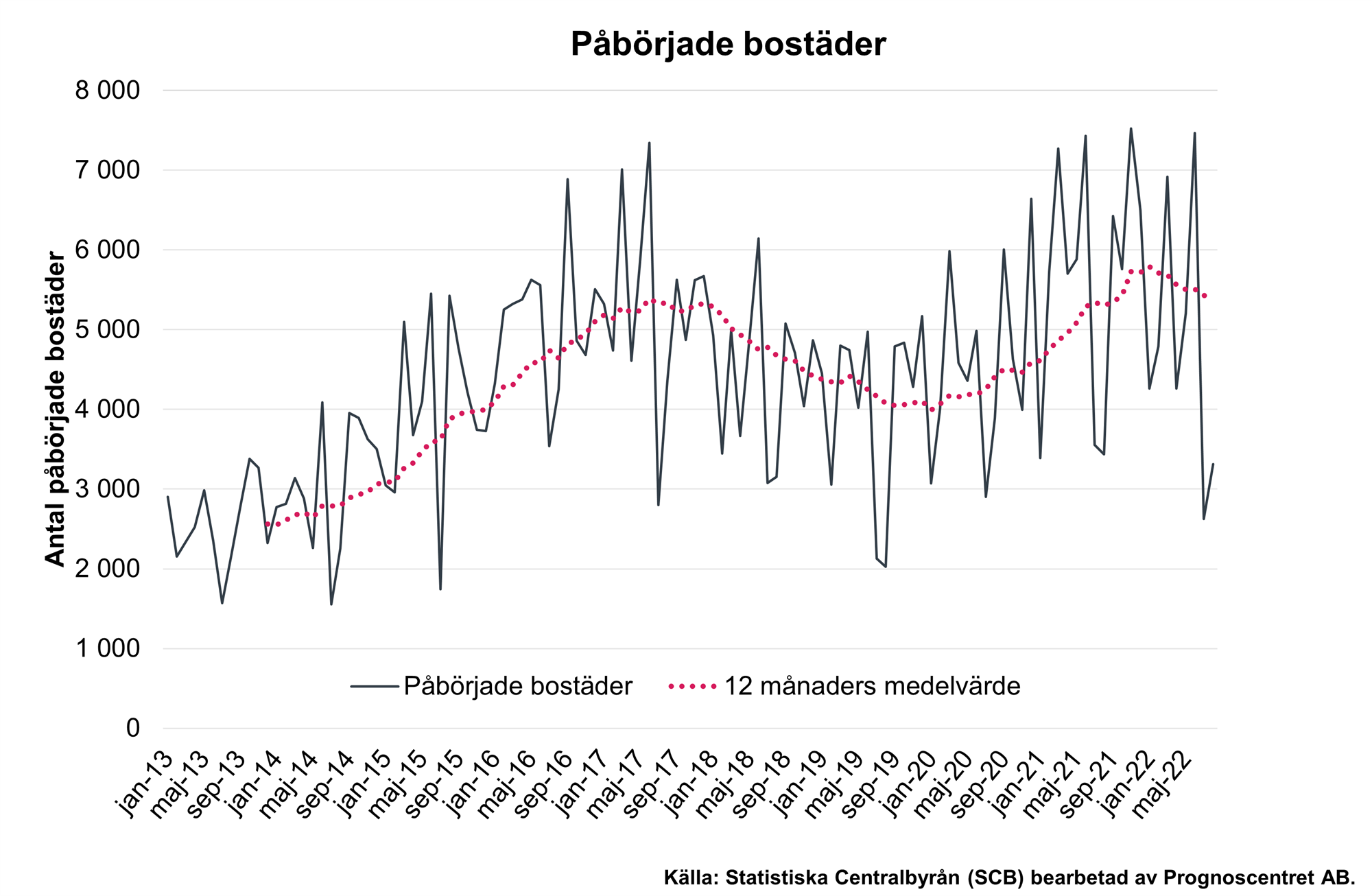 Statistiken inhämtas från SCB, Hemnet och Svensk Mäklarstatistik och bearbetas av Prognoscentret för eftersläpning i inrapporteringen. För Prognoscentrets kunder finns hela byggstatistiken tillgänglig för nedladdning i kundwebben.