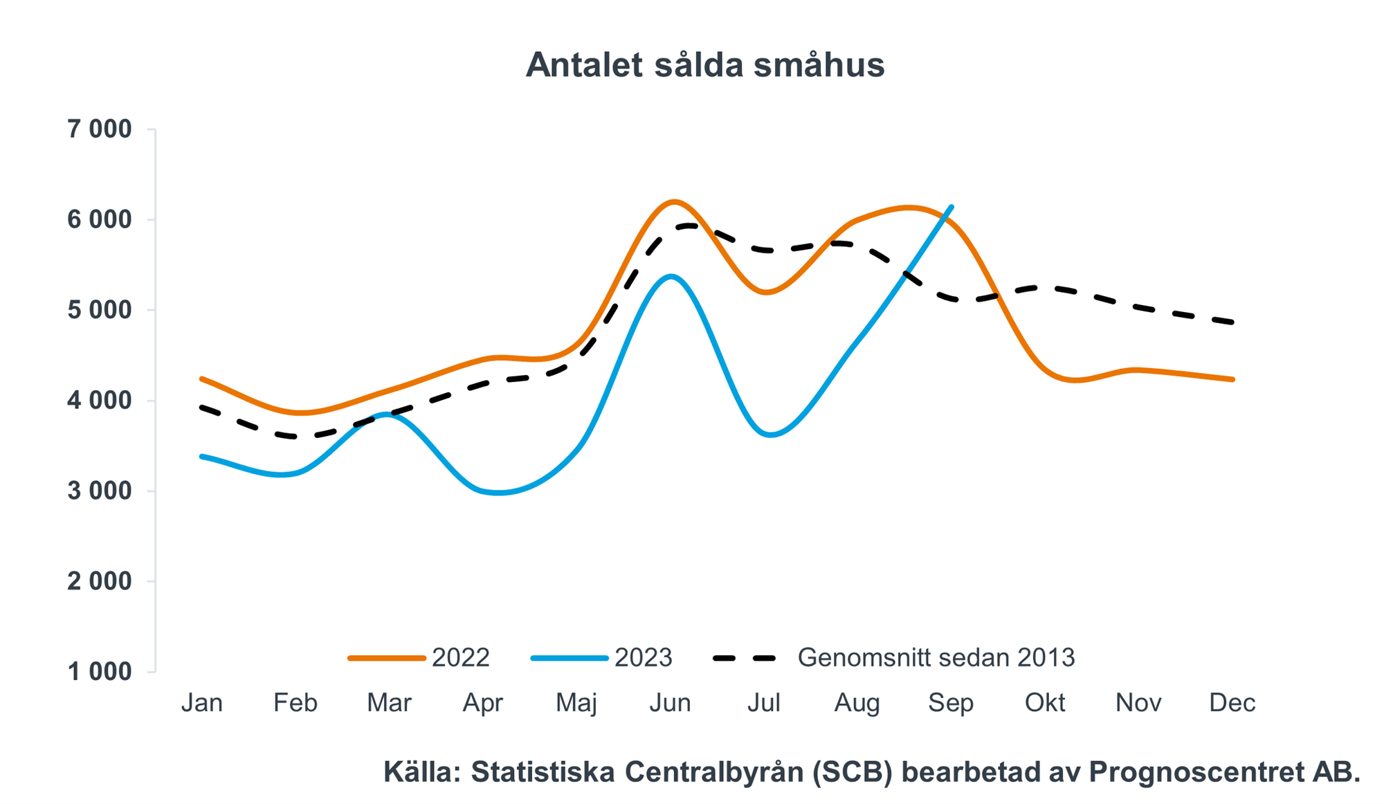 Priserna på småhus i hela riket föll i september med 1,2 procent jämfört med månaden innan. Priserna sjönk under månaden i 10 av landets 21 län jämfört med augusti. Störst prisnedgång uppmättes i Dalarna, med en nedgång på 3,5 procent medan den högsta prisuppgången på 6,3 procent uppmättes på Gotland.