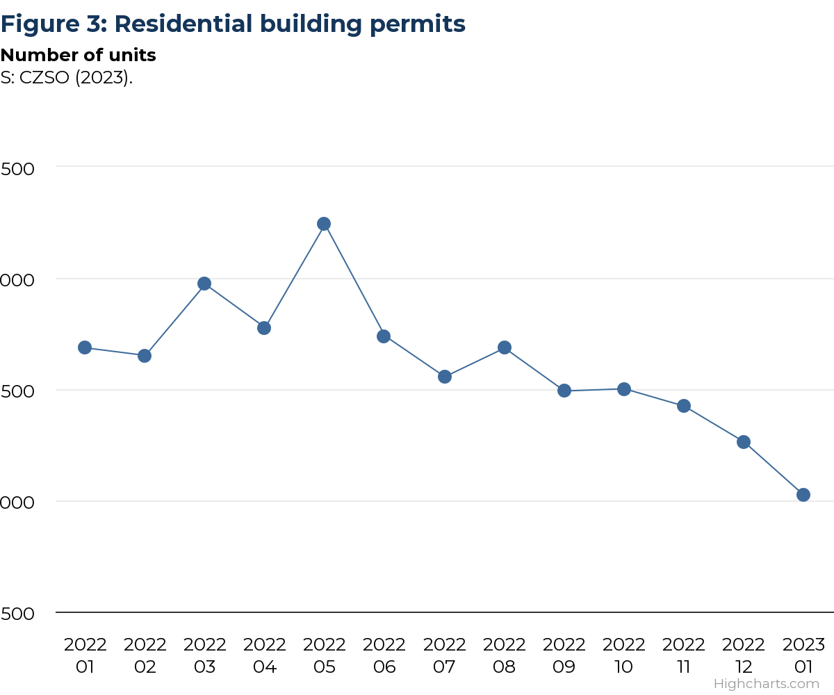 In a relatively short space of time, the housing market has found itself in a situation where high house prices have been accompanied by high mortgage rates, leading to a cooling in demand for owner-occupied housing. The volume of newly granted mortgages fell by 60% last year. Interest in new apartments in Prague also fell by roughly the same proportion. Nationally, interest fell by a third.
